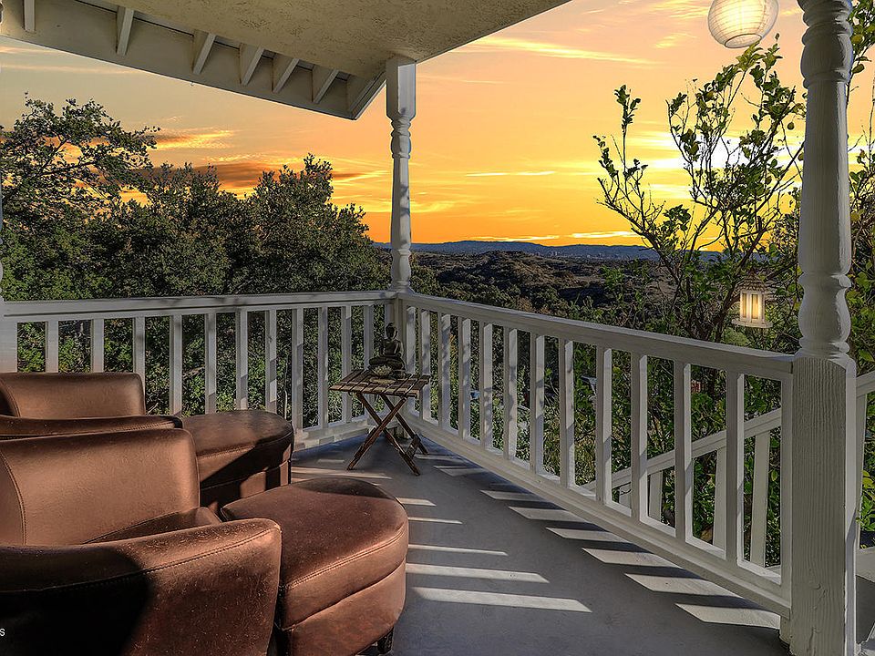 Escape from the hustle and bustle of the city to this beautiful home located in the eclectic and historic Chatsworth Lake Manor area. Nestled below the majestic sandstone bluffs, this cul-de-sac home will not disappoint! This 3 bedroom and 3 bath home is beautifully updated and offers unparalleled panoramic views of the valley, mountains, tree filled rolling hills and the shimmering lights of the city in the evenings. Step inside to a warm and inviting open floorplan with hardwood floors throughout entire main level. Beamed vaulted ceilings and fireplace in the spacious living room with an attached balcony. Tastefully updated kitchen with center island w/seating area, granite counters, and lots of cabinets that provides ample storage space. Additional views off of the kitchen and dining area plus a downstairs bedroom with walk in closet and a half bath round out the main level. Head upstairs to the master retreat which also offers scenic views, f/p, a large master bath with dual vanities, tub and stand alone shower. Upstairs is also another good-sized bedroom with full bath off of the hallway. Private backyard with porch off of the kitchen area and huge garage with loads of storage space. Also feeds into great schools including El Camino Real H.S.