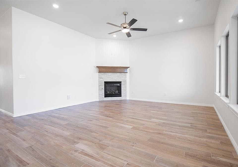 FENCING AND BLINDS INCLUDED! This Kamber floor plan includes 1,905 Sqft of total living space, which includes 1,750 Sqft of indoor living space and 155 Sqft of outdoor living space. This charismatic home offers 3 bedrooms, 2 full bathrooms, covered patios, a utility room, and a 2-car garage with an in-ground storm shelter installed. The living room presents high ceilings with a ceiling fan, wood-look tile, a corner gas fireplace surrounded by our elegant stacked stone detail, Cat6 wiring, and 3 large windows. The high-end kitchen supports a large center island, stunning pendant lighting, custom-built cabinets to the ceiling, stainless steel appliances, decorative tile backsplash, 3 CM countertops, and a large walk-in pantry. The large primary suite spotlights a sloped ceiling detail with a ceiling fan, windows, and our cozy carpet finish. The prime bath offers a free-standing tub, a dual sink vanity with framed mirrors, a walk-in shower, a private water closet, and a HUGE walk-in closet! The covered outdoor living supports a wood-burning fireplace, a gas line, and a TV hookup. Other amenities include our healthy home technology, a tankless water heater, R-44 insulation, a whole home air filtration system, and so much more!