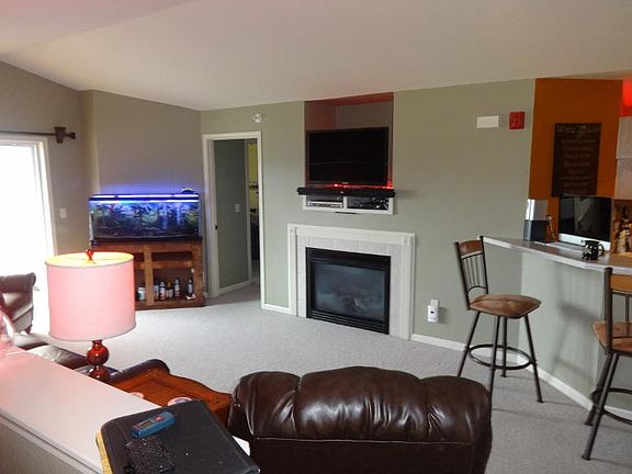 Condo in quiet location. Great outdoor pool, clubhouse, garage with additional parking spaces. 2 household pets allowed, 1 can be a dog with no size or breed restriction on dog. Combo whirlpool/shower, gas fireplace, vaulted ceiling, in unit laundry, open concept kitchen, dining & living room. Walking distance to bike trails and sports complex.