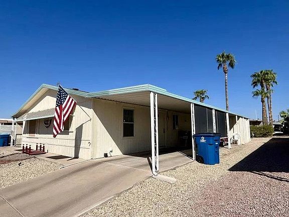 This charming and LARGE 1568 SF, 3 bedroom, yes, THREE BEDROOM!, 2 bath is the perfect place to call home in this delightful 55+ community. SPACIOUS backyard! Plenty of natural light. Washer and Dryer are included! This open concept gem features a functional kitchen with well-kept countertops, sleek appliances, and pristine cabinets. The spacious living area inside and outside is perfect for entertaining or family gatherings. You will find ample storage throughout the home, and unique work sink. You will enjoy Summer savings with your EVAPORATIVE COOLER in the primary bedroom. PLUS the peaceful outdoor patios areas can be set up to host many or keep it cozy. The enclosed pet area is a perfect place for your furry family member to hang out, and small pets can enter and exit your home using the pet door! Your shed and workshop with two entrances promises a useful space. Golf Cart is Negotiable!! Nestled in a vibrant community known for its friendly atmosphere and excellent amenities, this home offers both comfort and convenience. Don't miss the chance to make this wonderful home your own! Call TODAY for an in person tour! Fun, Friendly, and Fabulous are the best words to describe this active 55+ community in Mesa's East Valley near Broadway and Ellsworth. The residents enjoy outdoor recreational activities all year long, including our pickleball and shuffleboard courts. A private fenced and gated courtyard contains an outdoor heated pool and whirlpool spa surrounded by lounge chairs, recliners and shaded tables. Enjoy walking or biking along our clean private streets. A full-time maintenance team keeps the community clean and attractive. The on-site staff are friendly, dedicated associates who strive to maintain an excellent place to live and play. Interested in financing?