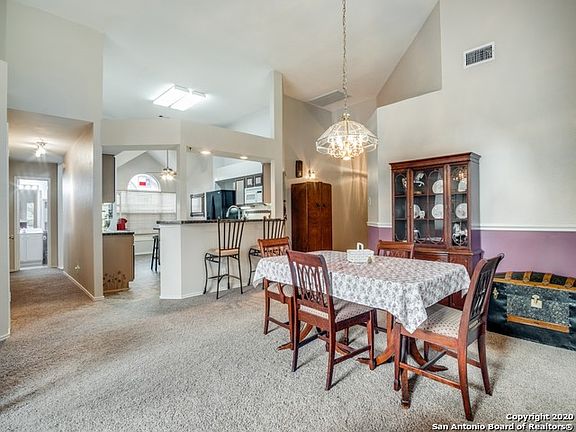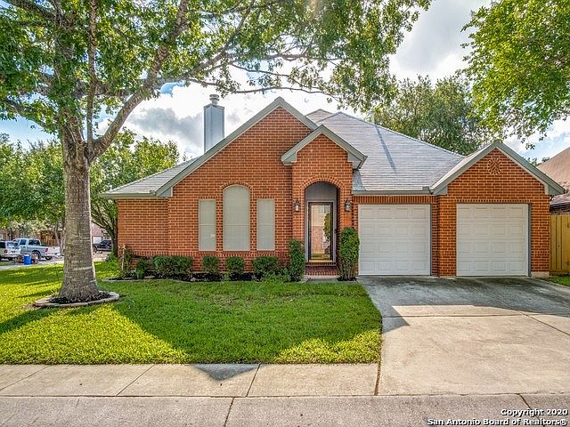 *IMPRESSIVE* Corner upgraded lot with beautiful curbside appeal. A well maintained 4 sided brick home with a roof that is 4 years old. Located in the desirable City of Helotes. Just minutes away from shopping, schools, and dinning. This home offers a unique architectural design. Open floor plan with large kitchen and large island. Breakfast area has window seat. Large living area with red brick fire place. High arched windows. Formal dining, split master bedroom with its own fireplace, and high ceilings. Master bath has separate tub & shower.