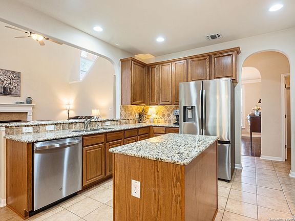 First showing Sunday, 10/12 at Noon! Welcome to your immaculately maintained retreat in the highly desired Fossil Springs neighborhood! This stunning property offers exceptional curb appeal with its timeless, four-sided stone and brick exterior, setting the stage for the quality found inside. Located on a private cul-de-sac lot, it offers a sense of exclusive privacy. The ultimate feature is the backyard's coveted positioning, which backs directly to the expansive acreage of Pedrotti's North Wind Ranch. Enjoy the serene privacy and Texas Hill Country ambiance from your backyard oasis, which features a charming deck and patio, creating the perfect setting for entertaining. The gourmet kitchen is a chef's delight, boasting sleek Corian countertops, gorgeous cherry 42" cabinetry, and essential gas cooking. A spacious formal dining room provides an elegant space for hosting dinner parties, or it can easily function as a dedicated home office. The flexible floor plan includes a convenient downstairs primary bedroom and full bath, offering a perfect private retreat. Upstairs, a large game room/loft is ideal for entertaining or relaxing. Inside, cozy up to the fireplace for a warm ambiance on chilly nights. Enjoy peace of mind with modern amenities, including a sprinkler system, security system, and a water softener. This meticulously maintained home in an incredible location is truly ready for its next owner!