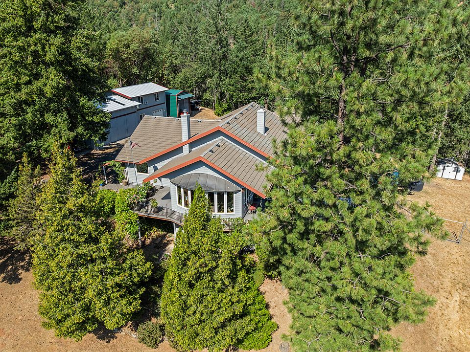 Welcome to a rare Southern Oregon gem with breathtaking views, privacy and endless potential. Nestled above a two acre vineyard, this 3 bedroom, 2 bath home offers elevated living with stunning views of Grizzly peak. Main home has primary suite and bedrooms on main level, vaulted ceilings, oversized living room and kitchen. Expansive wrap around deck to enjoy outdoor living with commanding views. Hardie-board siding and concrete tile roof. New HVAC and exterior paint. Large, detached shop with 220 amp, built in workbench, woodstove for heat. Additional garage space that includes single car bay, additional storage rooms, workshop. Massive 40 ft RV Barn ready for your motorhome. 2 acres of deer fenced vineyard. Included with the purchase are two additional parcels. 8.92 acre Woodland Resource zoned lot that has septic and is approved for a homesite. The other 0.97 acre parcel has a well. All makes up an amazing estate with lots of room to grow.