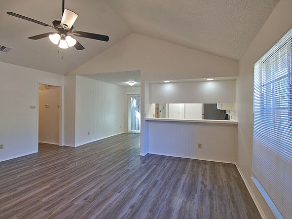 Updated three bedroom duplex in North Central Austin. The unit features recently installed vinyl plank and recently installed carpet in bedrooms. Cozy living room features a vaulted ceiling and ceiling fan. Kitchen has stainless steel appliances, a breakfast bar, breakfast area, gas range, and a pantry. Primary suite has a walk in closet and full bathroom. Tree shaded backyard with fencing and covered patio