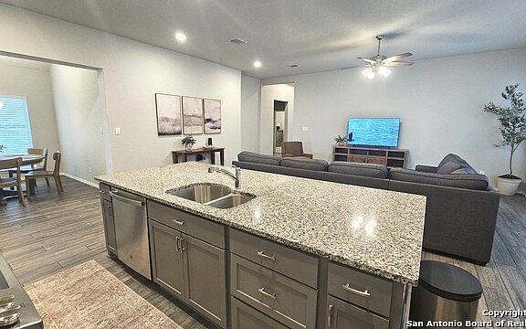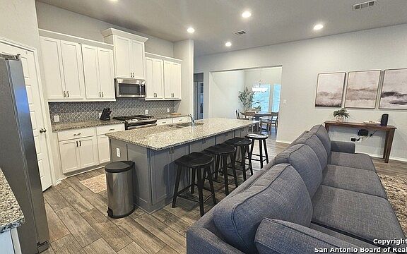 ALL UTILTIES AND FURNATURE INCLUDED. Welcome to your San Antonio retreat! This beautiful single-story home offers 3 bedrooms, 2 bathrooms, and over 2,000 square feet of stylish living space. Built in 2020, it showcases soaring ceilings, an open floor plan filled with natural light, and a modern kitchen with granite countertops and a spacious island that flows seamlessly into the dining and living areas. A dedicated office with French doors provides a quiet space for work or study, while the oversized master suite is a true retreat with abundant space and relaxing finishes. The home comes fully furnished with new furniture, tasteful decor, kitchenware, WiFi, and laundry for a seamless living experience. Outside, enjoy a two-car garage, backyard storage, and access to community amenities including a pool and playground. Conveniently located in Northwest San Antonio, the home offers easy access to Loop 1604, Culebra Road, shopping, dining, schools, and major employment hubs bringing comfort and convenience together in one perfect space. ALL UTILTIES AND FURNATURE INCLUDED.