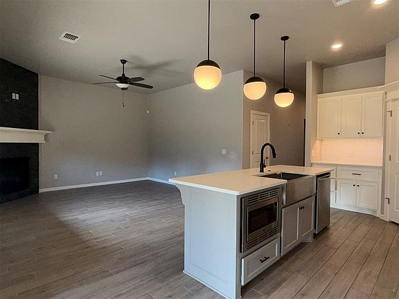 Step into style and comfort in this 3-bedroom, 2-bath home with a smart split floor plan, 2-car garage, tankless water, and storm shelter. Sunlight fills the open living space, where a quartz kitchen and floor-to-ceiling stone fireplace set the stage for gatherings. The private primary suite is your retreat, featuring a spa bath with jetted tub, tiled shower, and a walk-in closet that connects directly to laundry. Outside, enjoy a fenced yard with covered patio and outdoor fireplace—perfect for cozy evenings. With a community pool, basketball courts, pond, and quick turnpike access, this home offers the best of convenience and lifestyle.