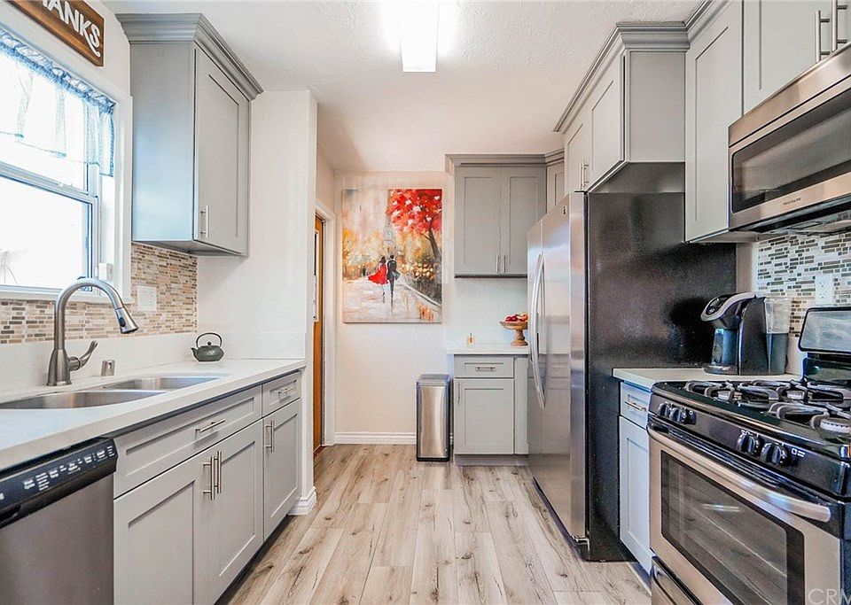 Truly pride of ownership! This beautiful modernly remodeled home with a legally permitted detached bonus studio is priced to sell fast!! This home features a gorgeously remodeled kitchen with stainless steal appliances, quartz counter top and newer cabinets, microwave hood vent and dishwasher. The home also features newer roof, newer dual pane windows, newer paint inside out, newer wood-laminate floors, newer electric panel, newer interior doors, vanity, sink, toilets and patio. Both homes have plenty of private yard space with mature trees. There is a detached two car garage and long driveway that will allow you to park at least 6 cars. Bonus studio has it's own bathroom, kitchenette and water heater. It is centrally located close to freeways, restaurants, shopping and much more. Come and see, you won't be disappointed! Hurry before it's gone!
