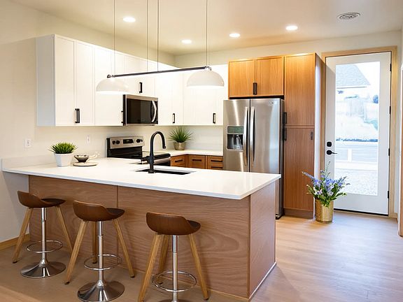 Large windows and natural light abound in this brand new, modern, and well-appointed West Valley Townhome. Conveniently located near shopping, restaurants and schools. The Kitchen is large, modern and features quartz countertops and stainless steel appliances. The Owners' Suite is large and features quartz countertops and undermounted sinks. Flooring is laminate throughout except for the bedrooms, which are carpeted, and the bathrooms, which feature luxury vinyl tile. A large back patio is conveniently located next to the kitchen for barbecuing and entertaining.