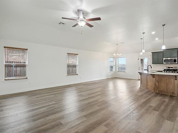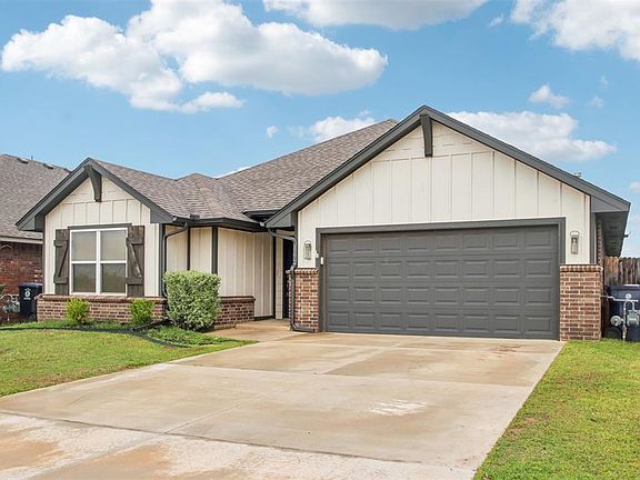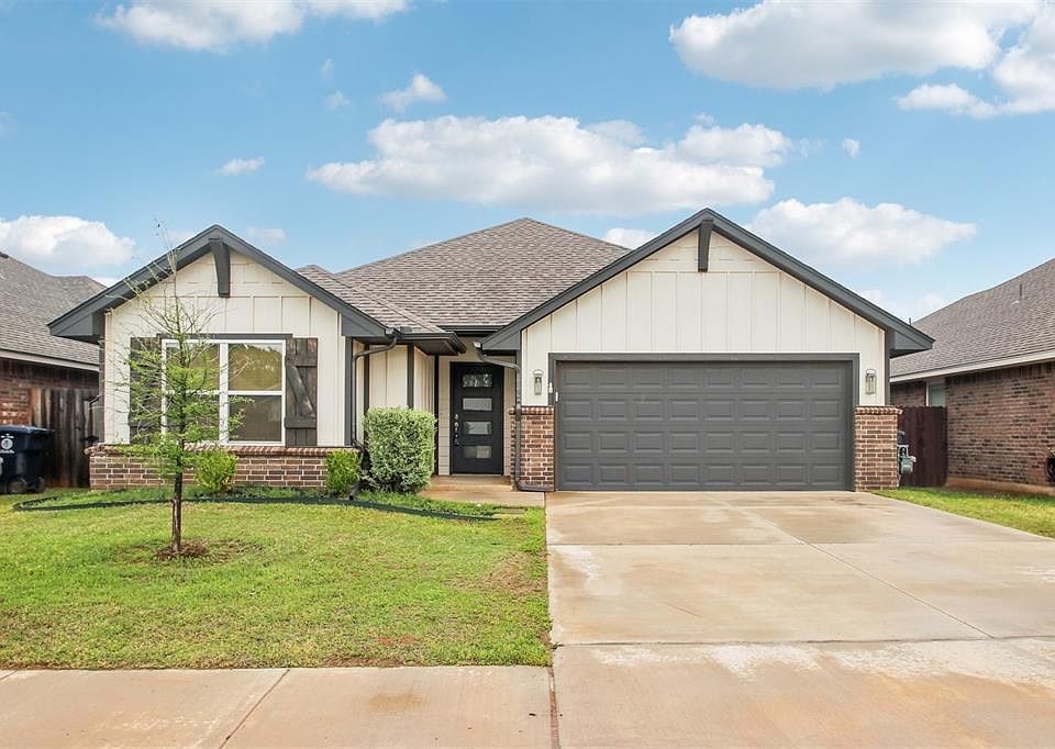Built in 2021, the home features a bright, expansive open-concept layout with a spacious kitchen that includes custom maple cabinets, quartz countertops, stainless steel Samsung appliances, pendant lighting, and a large island that connects seamlessly to the living and dining areas. The private primary suite is a relaxing retreat, featuring a luxurious bath with a garden tub, a fully tiled frameless glass shower, and a walk-in closet that conveniently connects to the laundry room. Secondary bedrooms are on the other side of the home (split floor plan!), generously sized with ample closet space and easy access to a stylish hall bath with upgraded tile finishes. Enjoy evenings on the upgraded covered patio overlooking the backyard, with a 2-car garage for added convenience. Located just minutes from the Kilpatrick Turnpike and NW Expressway, this home provides quick access to downtown OKC, Will Rogers Airport, shopping, dining, and outdoor recreation at nearby parks, golf courses, and Lake Overholser. Zoned for Surrey Hills Elementary, Yukon Middle, and Yukon High School, this home offers modern comfort in a prime location. Schedule your private tour today!