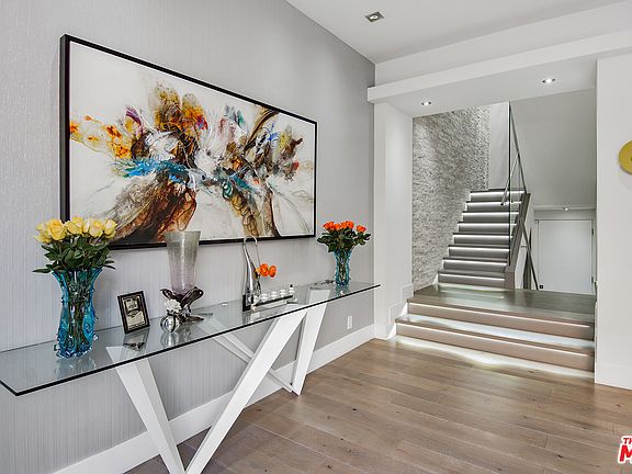 Contemporary luxury at its zenith - 3 bedroom 3 bath townhouse in the heart of Beverly Hills - renovated from the studs out with the finest materials and finishes available today Control 4 Smart house Nest comfort systems, Staircase with steps that light up, white-washed stone walls and glass-walled railings. Custom German Kitchen cabinetry created on the property, Miele appliances, Sophisticated MASTER bath with Phillipe Starke toilet Showroom like designed closets, for the discerning fashion accessory collector Custom-designed flooring throughout Controlled refrigerated glass display wine room that leads to professionally landscaped out door entertaining space.
