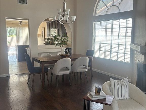 Discover the charm of The Lakes—one of Las Vegas’s most serene communities, known for its man-made lakes, mature trees, and grassy landscapes that create a true oasis in the desert. This inviting single-story 3-bedroom home offers a 2-car garage and a cozy front patio. Inside, enjoy vaulted ceilings, wood laminate flooring (no carpet), a warm fireplace, bay window, and neutral tones throughout. The upgraded kitchen features granite counters, recessed lighting, built-in appliances, ample cabinetry, pantry, and breakfast bar. The spacious primary suite includes backyard access, a two-way fireplace, dual sinks, a remodeled bathroom, and walk-in closet. Step outside to a large backyard patio—perfect for relaxing or entertaining. Located in the heart of The Lakes with easy access to parks, walking paths, and dining. A peaceful retreat just minutes from everything Las Vegas has to offer.