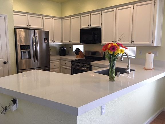 Great home on a wonderful street in Laguna West! This 2 story home has 4 bedrooms and 3 full baths, with one full bedroom & bathroom downstairs. The kitchen features brand new granite counters, sink and freshly painted cabinets. There is also Stainless Steel Appliances and Laminate flooring in the kitchen and family room. There are 2 pantry closets and one has a ton of space that goes under the stairs. There's an abundance of storage space in this home! The HVAC unit is only 3 years old and the water heater is only 1 year old. The beautiful Custom made drapes are all included in the sale. The back fence and side gate are brand new. The patio in back is huge and the driveway can hold many cars, plus there's a 3 car attached garage. There are separate Living and Family rooms in this well laid out home. The Stucco exterior and Tile roof make for easier maintenance. Walk to wonderful Joseph Sims Elementary and parks nearby.
