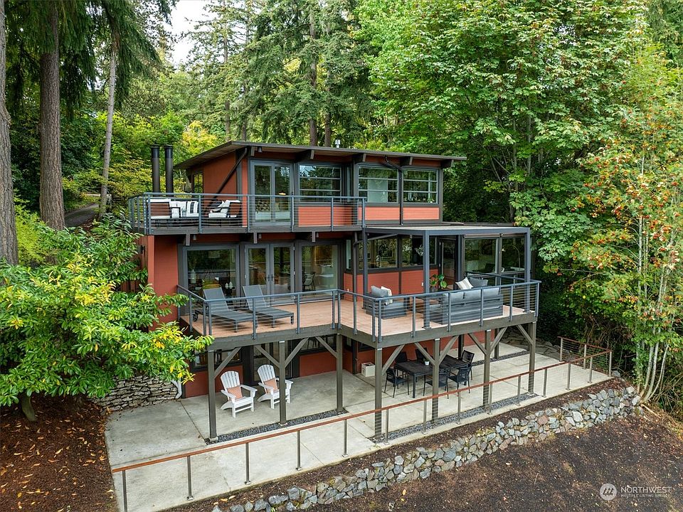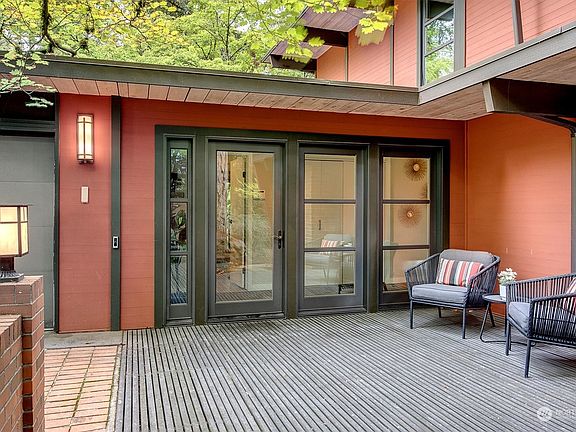 Mid- Century Modern reimagined! A fully renovated architectural stunner sited for lake & sunrise views from all 3 levels. Natural light juxtaposing interior spaces with the outdoor entertaining areas. This stylish home showcases crisp lines, exposed beams & cedar ceilings. The redesigned kitchen features high end appliances, Wolf, Bosch, wine fridge & sleek waterfall counters, Main floor bed/ office alternative, w/full bath. Private upstairs primary retreat & full bath opens to private rooftop deck. Lower level boasts 2 generous sized bdrms plus bonus/playroom. All levels open to wonderful outdoor entertaining spaces, designed to take in the views. Walk to parks, trails, shops & Starbucks, New roof '22, EV ready w/50 amp service/outlet.