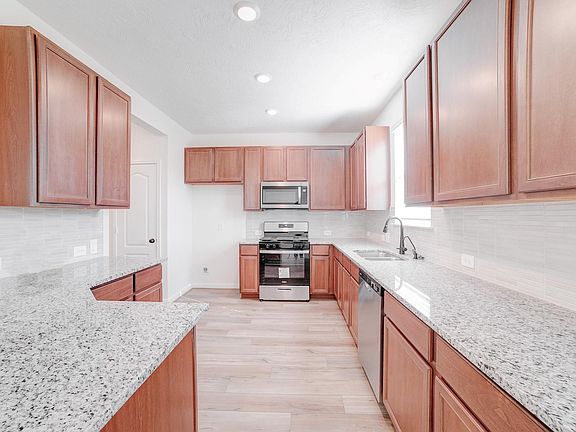 This home in Creekside Court features 3 bedrooms, 2.5 bathrooms, a game room, and a 2-car garage. With granite countertops, stainless steel appliances, and 42-in. cabinets, the kitchen is perfect for any chef. The primary bathroom features dual vanities, a Kohler Master Windward tub, and a separate shower. Enjoy 9' ceilings, faux wood blinds, and a covered patio. An energy-efficient home with no back neighbors, this property is ideal for families. Close to Spring Creek Nature Trail and Burroughs Park, and just a short drive to Woodlands Mall. Zoned to Magnolia ISD. Don't miss out on this stunning home! Schedule your showing today!