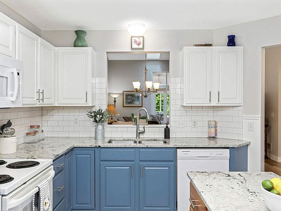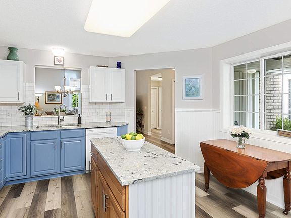Lovely Twin home offering a one level living opportunity with an attractive open floor plan and many updates! Nestled in a mature setting on a cul-de-sac street. Private covered entry opens to the vaulted living and dining area and flows to a wonderful 4 season porch/sunroom. New high-end water-resistant wood grain flooring, professionally painted through-out including trim & beadboard accents and an attractive gas fireplace. Your kitchen boasts new Granite counters with a tile back splash, a custom center Island, professional painting, new cabinet hardware & added shelving in the pantry closet. Great Laundry Room with cabinetry storage off your kitchen. Large Master Bedroom Suite with an oversized walk-in closet and recently updates master 3/4 bath with attractive tile work. Also find a good-sized 2nd bedroom for a guest or an office and an updated full bath. You will be surround by lovely, wooded views from your 4-season porch/sunroom and patio with privacy fence.