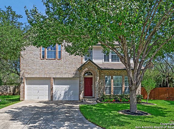 Lovely cul-de-sac home, set on a large tree-filled lot. Open floor plan and nice architectural arches in entryway. Downstairs has tile and laminate flooring; kitchen opens up to family room. Shady patio in the backyard is graced with 22 oak trees. Home has new carpet upstairs and lots of the interior has been painted. Great storage in house-master bedroom has two walk-in closets.