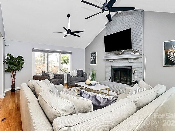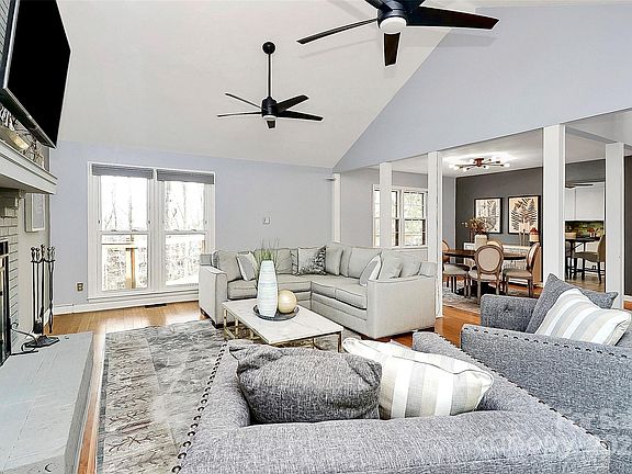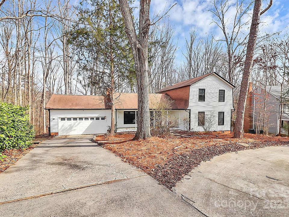 Welcome to this 4 bed 2.5 bath home situated on a beautiful wooded almost 3/4 of an acre in the Deer Park community of Raintree! This charming home features a welcoming stone front porch, custom front door, wood burning fireplace, bamboo and tile flooring, oversized deck and patio below to relax and take in all of the surrounding nature and peaceful wooded views. Enter into large vaulted ceiling family room and adjacent dining room. Primary suite on main and 3 generous bedrooms upstairs. Vintage style kitchen w/new backsplash. Laundry room w/ extra storage. Home has a newer water heater (2019), triple pane Apex windows on main, whole home water filtration system, renovated master bathroom, attic storage & garage with built in cabinets. Circular driveway for extra parking. Resort-feel neighborhood mere minutes from 485, schools, Waverley, Arboretum, dining and shopping. Fireplace has been maintained - sold as is - no known issues. Country Club initiation cost waived for this property!