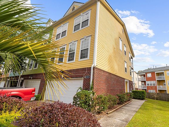 Welcome home to this beautifully maintained end-unit townhome featuring 3 bedrooms, 2 full baths, and 2 half baths, perfectly located near I26, shopping, Boeing, Mercedes, Volvo, Charleston International Airport, and the Air Force Base.The first (lower) level has a large two car garage. Once you enter this beautiful home, the first level offers a versatile bonus room complete with hardwood floors and a convenient half bath--ideal for a home office, media room, game room or playroom.On the main (second) level, you'll find an open and inviting layout with a spacious family room, generous dining area, bright sunroom, and a lovely kitchen equipped with stainless steel appliances, ample cabinetry, and beautiful hardwood flooring throughout.The third level features a large Primary suite with a walk-in closet, ensuite bathroom and private porch access, creating the perfect place to relax. Two additional bedrooms with carpet and another full bath complete the upper floor. Enjoy outdoor living with three porches, one on each level! Situated at the end of a quiet cul-de-sac, this home offers an expanded lot with extra yard space and is just a short walk to the beautiful community pool. This opportunity will not last long, book your showing today!