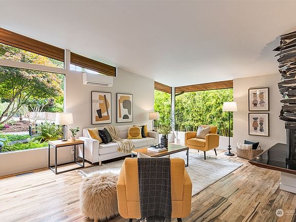 Your MCM Home Has Come A-knockin'! All the vibes: wide pitched roof & all the mad angles, big west-facing windows, sensible flr plan, stunning clear cedar eaves, slatted carport & decking. 3 beds on the main, dedicated din room, eat-in kit w/cool original custom cabinetry, lower level rec room for endless fun, & room to expand in high ceiling util room/shop. Updates: minisplit AC, 2022 roof, plumb & elec. Enchanting park-like lot on quiet, deadend street near the Puget Sound: beautiful landscaping & gardens, veggie beds, multiple priv patios & outdoor lvg spaces, custom slider gates, carport + ample off-street pkg. Quintessential PNW living: Golden Gardens, Carkeek Pk, Sunset Hill eateries nearby! Inquire about North Beach Club membership!