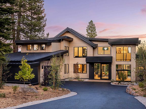 When you combine mountain modern luxury, a prime south-facing lot, views of Northstar, and an active price, this becomes the most compelling property on the market. Nestled in the most sought-after location within Schaffers Mill, Gaston Court, this stunning 4,658 square foot home offers four bedrooms, four full bathrooms, and two half baths. Impeccable design and flow accentuating indoor outdoor living. The three-car garage provides ample storage. Sierra Pacific windows frame breathtaking views, while A-grade clear smooth cedar siding enhances exterior beauty. Inside, European white oak floors, walnut cabinetry, and a Rutherford 42-inch gas fireplace add style and warmth. The kitchen is equipped with Jenn Air appliances, including a 48-inch fridge/freezer and range, and a breathtaking 12-foot porcelain waterfall island. Enjoy entertaining with a walk-in wine display and home theater system. Smart Schluter heated floors in bathrooms and smart technology throughout, including a solar-owned 4.0Kw system, ensure comfort and efficiency. Embrace elegance, comfort, and cutting-edge technology with stunning Northstar views. Welcome home to the pinnacle of Schaffers Mill living!