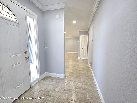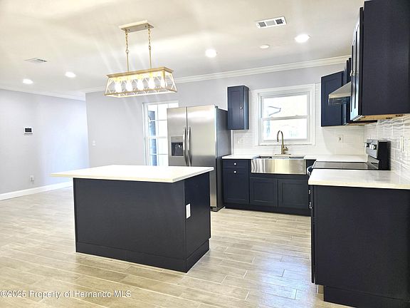 Welcome to this stunning, fully renovated 4-bedroom, 2-bathroom home, where modern elegance meets everyday comfort! From the moment you arrive, you'll be greeted by a beautifully landscaped exterior and a spacious circular driveway, offering ample parking and a grand entrance. Step inside to an open-concept living space featuring brand-new tile flooring, fresh interior and exterior paint, and new impact windows that fill the home with natural light. The gourmet kitchen is a dream come true, boasting quartz countertops, custom cabinetry, stainless steel appliances, a stainless steel farmhouse sink, and a stylish wine nook, all seamlessly flowing into the dining and living areas—perfect for entertaining. The primary suite offers a luxurious en-suite bathroom with a walk-in shower, while three additional spacious bedrooms provide the perfect space for family, guests, or a home office. Step into your fully enclosed Florida sunroom, an ideal spot for morning coffee or evening relaxation, and enjoy the freshly landscaped yard with exterior lighting for an inviting outdoor retreat. A two-car garage with backyard access adds convenience, and with a brand-new electrical panel, updated electrical wiring, and modernized outlets this home is move-in ready with key updates already in place, Roof 2016 and AC 2011. Located near boat ramps and the famous Weeki Wachee Springs, this home offers easy access to outdoor adventures, kayaking, and natural beauty. With shopping, hospitals, and popular restaurants just minutes away, you'll have everything you need within close proximity.