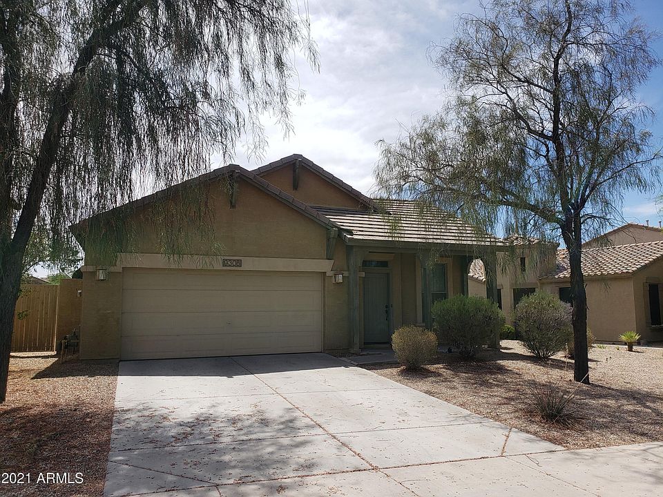Beautiful single story 3 bedroom PLUS den, 2 bath home in the upscale community of Estrella Mountain. The Den has double doors, but no closet. Upgraded cabinets and granite countertops in the kitchen, kitchen island, gas stove, black appliances. Open family room to the kitchen. View fence in the backyard, as the home backs to a preserve. New AC unit installed in 2023.