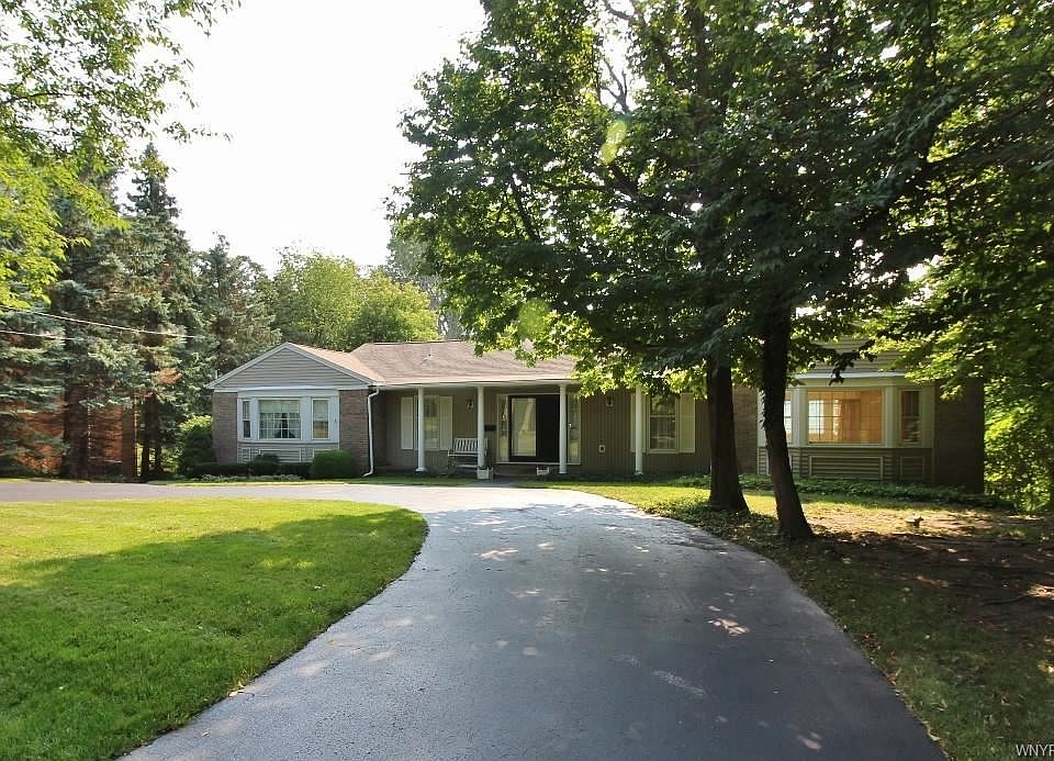Picturesque setting for this unique hillside ranch. Spacious home overlooking the extra large lot surrounded by mature trees. Hardwood floors in entry and bedrooms. 30 x 18 living room with fireplace. Heated 20 x 12 sunroom. Lower level at grade has 14 x16 area and second fireplace and 17 x 14 bedroom, plus 20 x 12 enclosed patio. Some updating is needed. Lots of potential. Great neighborhood. Square Footage listed is accurate. Town records are not. Sketch is being prepared and will be attached as soon as available.