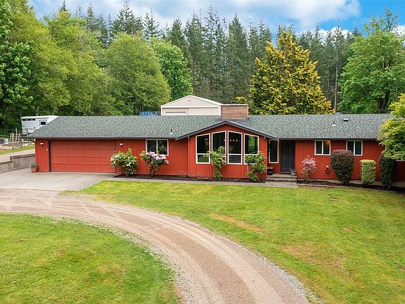 A horse lovers sanctuary! Serene private setting on 6 pastoral acres w/gated entry & circular drive. Sweet 3 bedroom rambler full of fresh finishes including interior paint, new carpet & interior doors, beautiful LVP floors. Open kitchen w/new quartz counters, acacia wood island. Newly constructed barn has 5 12x12 stalls w/ThuroBed Mattress System & attached paddocks, frost free water, ready area, feed & tack room, trail access. Fully fenced w/lush green pastures, sunny open spaces, apple+cherry trees, chicken coop, ample parking for vehicles/toys/RV. Multiple outbuildings~24x40 shop w/220V, 25x56 3 stall barn/equipment/hay storage, 9x26 craft/storage room & woodshed. Expansive entertaining patio w/hot tub. Minutes to DT Snohomish & Monroe.