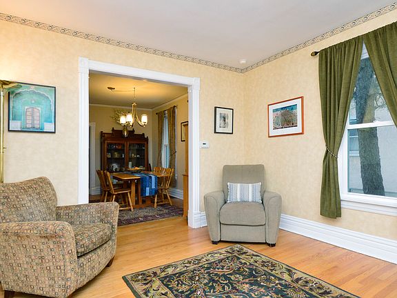 From the open, inviting front porch to the beautiful perennial garden in the spacious backyard, this is truly a place you will want to call home. Features include a cherry cabinet kitchen with Corian countertops and all new ss appliances. Cozy family room off of kitchen along with first floor guest bedroom. Original bulls-eye moldings and refinished hardwood floors throughout. 2nd floor was totally rebuilt in 2005, with new flooring, bath, laundry, and large open space for in home office or family room. Windows have been replaced and zoned heating and AC are newer. There is also a separate secluded writers studio in the backyard, redone in 2005 with new walls, flooring, roof and stucco. 2 car garage and built in sprinkler system. All new tear-off roofs in 2018. Home is across from Washington school and down the street from the new Crown Center. Just blocks to the El and Metra stations. Call today!