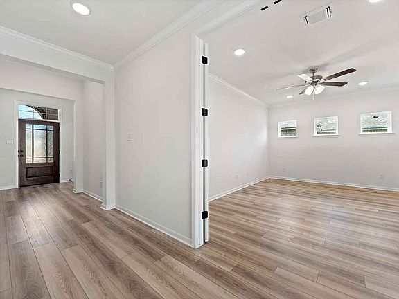 With three bedrooms, two and a half baths, and a three-car garage, the Drake offers ample space! Inside, you'll discover an expansive island kitchen featuring quartz countertops, built-in appliances, a large walk-in pantry and the latest designer touches, including vinyl plank flooring, which combines elegance with durability. The oversized dining room is perfect for enjoying family gatherings, the private study, with double French doors, allows for a quiet space to work and the artisan shower in the primary bath offers the perfect place for total relaxation. The accessibility of the laundry room directly from the primary's closet is a unique feature that beams modern efficiency. Come experience the perfect blend of functionality and contemporary design in this remarkable home.
