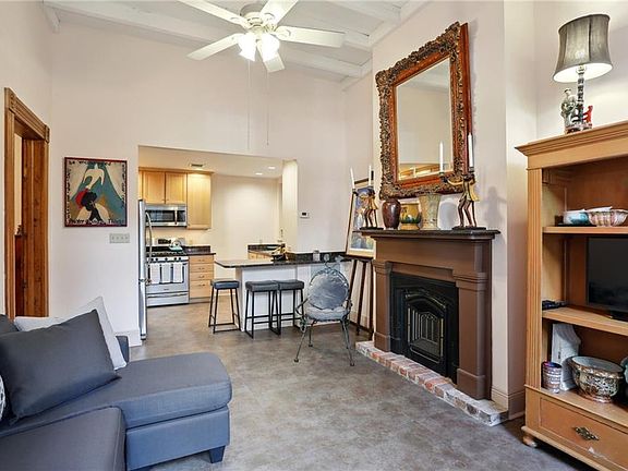 Tucked away in a renowned historic building on one of the most coveted residential blocks of Chartres Street, this charming condo offers timeless elegance in the heart of the French Quarter. Richly stained wood accents throughout—including an ornate fireplace mantle—and classic French doors in both the living room and bedroom highlight a timeless design.