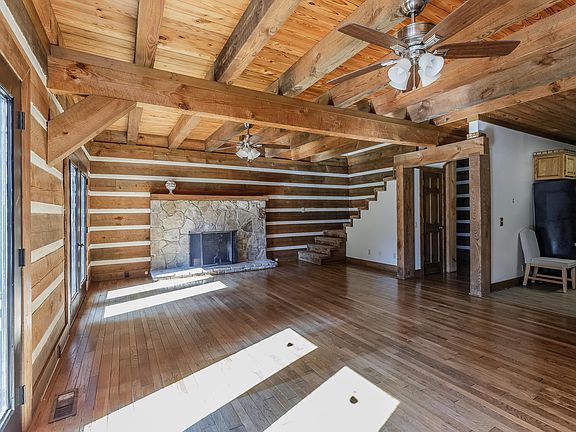 Enjoy the warmth and coziness of log home living at this lovely 3 bedroom, 2.5 bath home in LaFayette, GA. This gem features a spacious great room with beamed ceiling and big stone fireplace. Kitchen area has plenty of cabinet and counter space, all appliances, and a breakfast bar. Off of the kitchen is a laundry / half-bath. Master bedroom is located on the main floor with its own private bath with double vanity sink. Upstairs are two good-sized bedrooms and another full bathroom. Plenty of great outdoor living on the open deck, covered front porch, and covered back porch. There is also a 24x12 ft workshop. Don't let this beauty get away; call today for a showing.