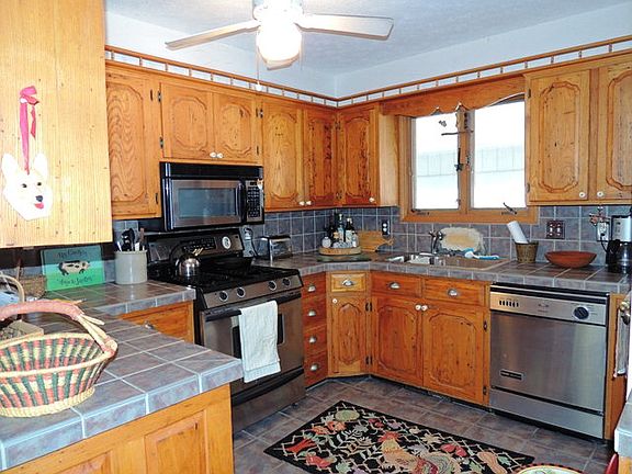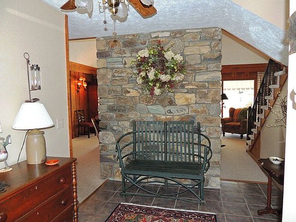 Spectacular Moberg designed 3 bed/4 bath garden home sits on corner lot. Open sleeping loft acts as 4th bedroom. Main level consists of the kitchen w/wormy chestnut cabinets, tile countertops & ceramic tile flooring, stainless steel appliances w/gas range. Living & dining room have wormy chestnut walls/crown-molding throughout & large stone gas FP along w/master bedroom/bath & add'l full bath. Lower level features large family room w/stone FP along w/two bedrooms & two jack n' jill baths. Lavish gardens and birdhouses surrounding home. Over-sized bedrooms. Copper gutters, water filtration system & Andersen windows; very well insulated. Large wrap-around driveway w/carport. One car garage can also accommodate golf cart. Bath on lower level has Jacuzzi tub. Stone terrace on lower level leads to waterfall,fish pond and garden bench. Ceramic tile flooring in kitchen extends into foyer. Master bath flooring and shower slate tile.