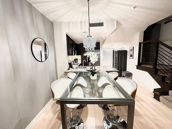 Located in the highly desired complex on Lake at Walnut is this spacious 1 bedroom, 1.5 bath unit with an open floor plan. An updated kitchen with granite counters and stainless steel appliances opens to an elegant dining with chandelier and a bright and airy living room. A stacked washer and dryer is conveniently hidden in a vented closet. Light colored wood-like flooring throughout the first floor provides easy maintenance and the lower floor patio located for easy access from the street. Upstairs is an expansive primary bedroom with an en-suite bath featuring dual sinks, a sit-in vanity area, granite counters, and a glass enclosed tub/shower. Plentiful storage is available with a walk-in closet, linen closet, and additional extra closets. Entertain in the community courtyard with an outdoor fireplace and grill and club room. Also convenient is an on site gym and two assigned garage parking spaces. Water and trash are included with the lease. Inquire today to reserve possession!