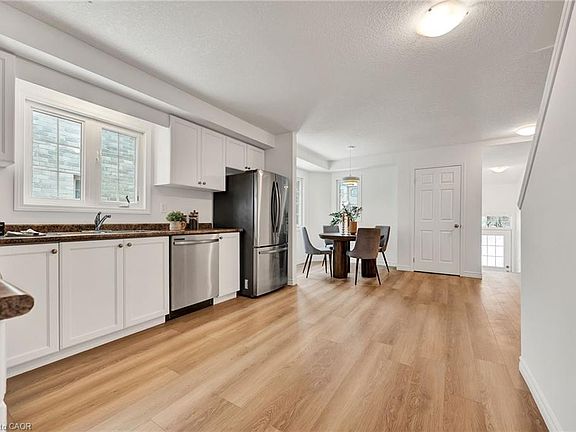 OPEN HOUSE SUNDAY, DECEMBER 21ST 2:00 PM- 4:00 PM!!! Welcome to 931 Glasgow Street, Unit 12C — a beautifully updated all-brick townhouse that truly feels better than new. Thoughtfully refreshed from top to bottom, this 2-storey, three-bedroom home offers a bright, modern interior paired with one of the most desirable settings in the complex, backing directly onto peaceful green space and a walking trail. The main floor has been reimagined for everyday living, featuring durable hard-surface flooring, fresh finishes, and an open-concept layout that feels both inviting and functional. The updated kitchen showcases crisp white cabinetry, stainless steel appliances, and generous prep space, flowing seamlessly into the dining area and sunlit living room. Large glass sliders bring the outdoors in and open to a private rear deck/yard with uninterrupted green views — a rare find and a welcome extension of your living space. Main-floor laundry adds to the home’s practicality and ease. Upstairs, you’ll find three well-proportioned bedrooms with new carpeting and a bright four-piece bath, offering flexibility for families, guests, or a dedicated home office. The all-brick construction not only adds timeless curb appeal but also provides durability and quiet comfort rarely found in townhouse living. Set in a highly convenient location, you’re minutes to The Boardwalk, Uptown Waterloo, both universities, transit routes, shopping, and everyday amenities. Whether you’re commuting, downsizing, or looking for a low-maintenance home that doesn’t compromise on space or setting, this move-in-ready townhouse delivers easy living in a location that connects you to everything the city has to offer.