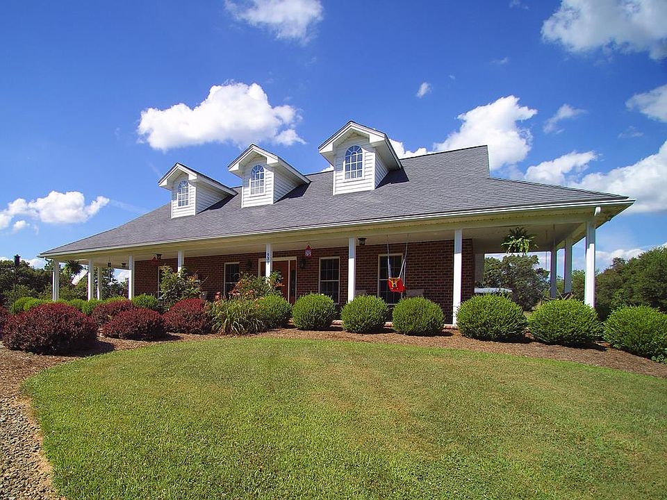 Spacious Home with Acreage in the Blue Ridge Mountains. This 4 bedroom, 3 & 1/2 bath brick home is in like new condition and located on 9 acres of property just off of a quiet, paved, state maintained road. Topography of property is good and there are several fenced acres with a nice barn with water and electricity for horses. There is a large outbuilding that has power and could be used as a workshop or detached garage. The home is low maintenance brick and has many custom touches. There are solid farm house doors throughout the home and solid custom kitchen cabinets, granite counter tops, hardwood floors throughout, large master suite with large walk in closet, 1/2 bath with large laundry room, sun porch, large partially finished basement with large living area, bedroom, bath, tanning room, and studio area that could be used a workshop or craftroom. The access from basement is walk out as well as interior, it could easily be converted to a mother in law suite.
