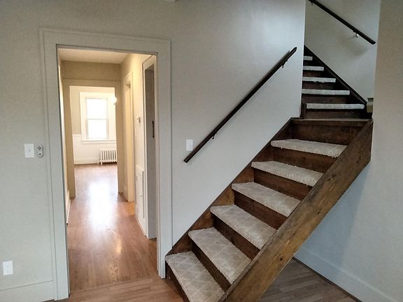 Beautiful 2 bedroom duplex 2nd floor apartment with loft type upper level bedroom and skylight. Equipped kitchen, dining room and lots of closet space. Shared basement with laundry hook ups. Nice backyard with deck area. Off street parking. Future garage space will be available for additional fee. Credit, background check, 650+ credit score and 3 times the rent income mandatory. MUST PROVIDE CREDIT SCORE FOR VIEWING. Owner pays water, sewer and trash collection. Tenant pays electric and gas. Newer fuel efficient gas boiler installed. Cat accepted with $10 additional rent per month. Dog under 30 # accepted with $20 additional rent per month.