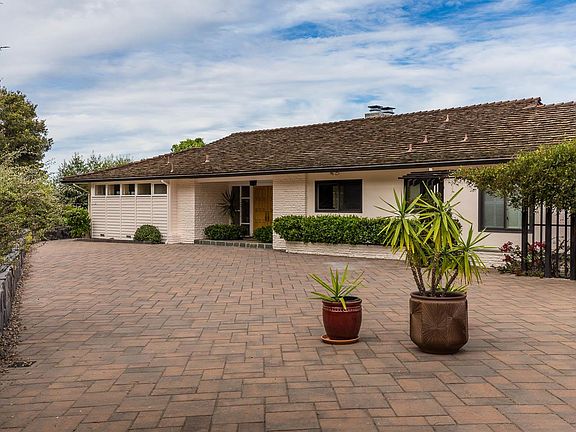 Natural beauty, views, and privacy. Woodside Hills. 5 bed, 4 bath home of 2,620 sq. ft. on 1.12 acres offers sweeping bay views from most rooms. Paved motor court, 2-car garage. Interior features high ceilings, lots of glass, oak parquet, 2-sided fireplace in living and dining rooms, wet bar, built-in barbecue, china cabinet. Two master suites, one with sunken Jacuzzi. Patio overlooks swimming pool, stunning property.