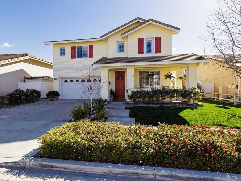 Beautiful and well taken care of home that offers 4 bedrooms 2.5 bathrooms situated on a quite cul-de-sac lane. Bright and open layout designed with architectural features and vaulted ceilings that makes it feel extra spacious! Plantation Shutter throughout the house. Beautiful pool jacuzzi and waterfall. All appliances are included even refrigerator, washer and dryer! and some furniture. Don't miss out on this one.NO MELLO ROOS.