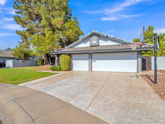 MOTIVATED SELLER - Fantastic Location! Quiet neighborhood - close to parks and schools. This lovely 4-bedroom, 2-bathroom residence boasts a 3-car garage, huge lot, fenced pool, and lots of room to entertain. Enjoy the open and bright living areas with new upgraded back doors, plantation shutters, skylights and custom security iron work on front door and garage windows. Newer AC and roof ensure the big items are taken care of for you. The large primary bedroom includes a fabulous walk-in closet and separate exit to the backyard. The attached bathroom includes a soaking tub, separate shower, and private toilet. In the backyard you'll love the private fenced pool surrounded by gorgeous tile work, grass and fruit trees. Great space with plenty of room to entertain friends and family