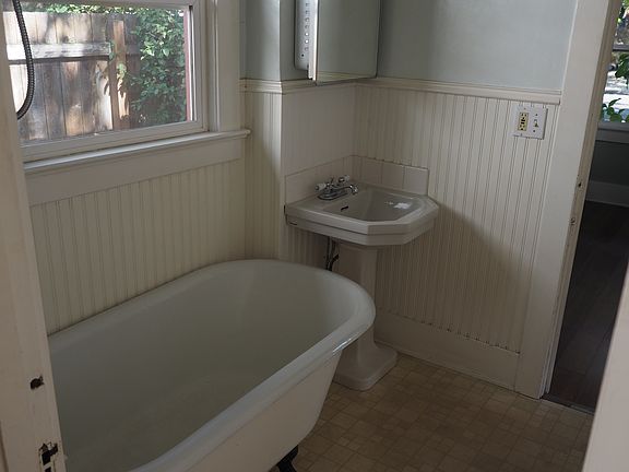 Cute little cottage located in Portland's North Tabor neighborhood. This two bedroom one bath home has 935 sq.ft of living space. There's a nice front porch under a giant walnut tree that looks out over a quiet neighborhood. Recent updates include: new bamboo flooring, vinyl windows, insulation in attic and crawl space, freshly painted interior and exterior, new cement patio, new gutters. The house includes a cast iron gas stove, claw foot bathtub, washer and dryer, finished room in basement. Garbage service and high speed internet included. The back yard is fenced and there's a nice size wood outbuilding or garden shed. Good opportunity for a gardener.