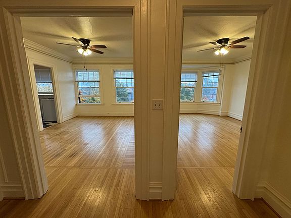 The flexible layout lets you customize your living space with pocket doors between the dining and living roomsperfect for entertaining or creating a cozy private retreat. Northeast-facing windows bring in excellent natural lighting, giving the apartment a bright, airy feel.