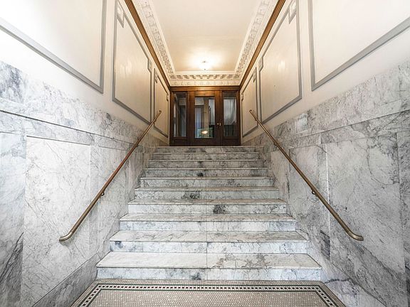 Step into this beautifully designed apartment on the top floor of The Bretnor! Featuring classic architectural details like hardwood floors, tall ceilings, and large windows that flood the space with natural light. Blending old-world charm with modern conveniences, this home also includes tiled bathrooms and a gas stove in the kitchen. With a spacious entry closet and a walk-in closet in the bedroom, there's plenty of storage.