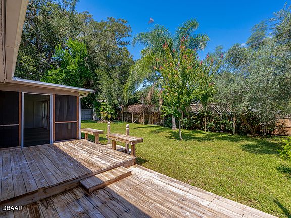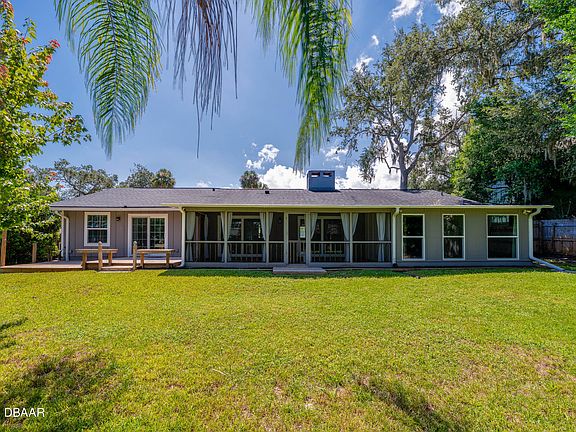 Inside the main residence, you'll find a spacious layout complete with a cozy brick wood-burning fireplace, newer appliances, and plenty of living space for the whole family. The primary suite includes a private sunroom retreat, ideal for morning coffee or quiet relaxation. Outdoor living is just as inviting with a large screened porch, a deck overlooking the private backyard, and a cozy front porch perfect for enjoying the neighborhood atmosphere. Recent upgrades provide peace of mind, including new HVAC systems (2019), updated electrical panels (2019), and a new water heater (2019). Located in a desirable neighborhood in the heart of Ormond Beach, residents enjoy access to a community pool and tennis court, as well as a warm, family-oriented atmosphere. This is the perfect home for families caring for parents or extended family members, offering space, flexibility, and modern convenience.
