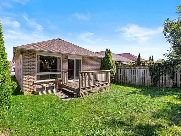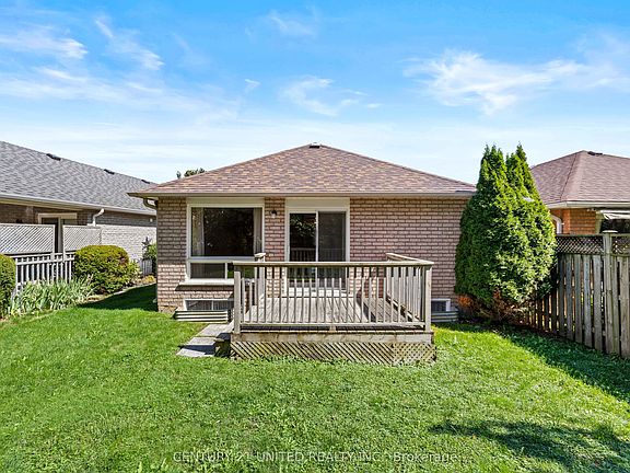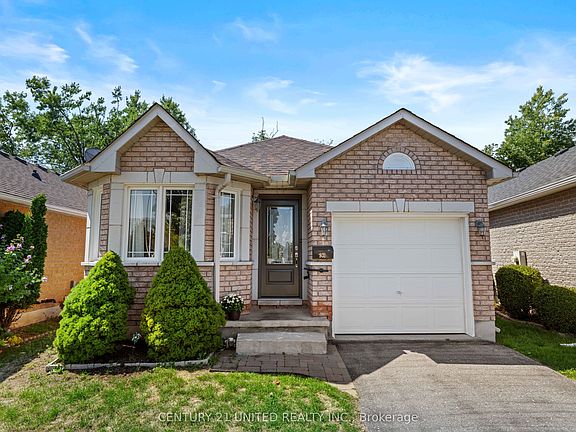 Charming 2-bedroom brick bungalow in Peterborough's southwest pocket. Tucked on a quiet crescent of well-kept homes with quick access to Hwy 115, shopping, hospital, trails, and paths. Perfect for retirees or first-time buyers. Open-concept living room and eat-in kitchen. Patio doors lead to 8' x 10' deck and private backyard. Main 4-pc bath. Convenient main floor laundry closet. Second bedroom features a bay window. Full unfinished basement with 3 large windows-ready for your custom design, roughed-in for C/V. Single attached garage. Recent updates: shingles (1.5 yrs), front door. Well cared for and move-in ready with quick closing available.