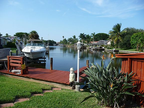 Seller to credit buyer $15K to add their own personal touches. Upgraded home in sought after Yacht Haven Estates. Spacious split plan four bedroom, two bath, boosts large fully landscaped corner lot across from Nature Preserve and beautiful view of long canal from kitchen which opens with snack bar to oversized 30 ft. Florida Room with ceiling to floor top quality double pane low E windows. Features New oversized eat-in kitchen with all wood Maple glazed custom cabinets, Silestone no maintenance quartz countertops with snack bar to Florida Rm.with stone wood burning fireplace. Newer tile roof, almost new 4.5 ton AC condensing unit, upgraded electric service, beautiful tile floors with wood laminent in bedrooms. Custom privacy fencing, large custom built brick BBQ and smoker. Watch wildlife wildlife