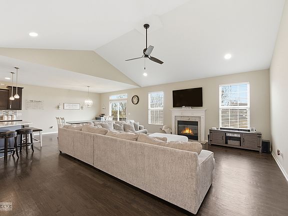 Cozy fireplaceHigh ceilingsFresh new landscapingStacked stone exteriorFull sized windowsWelcoming covered front entrance
