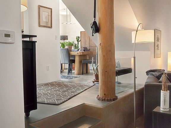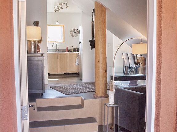 Are you searching for a modern feel in the City Different? The Twisted Cow Condominium community in the Baca Street section of the Railyard District is the perfect place , with it's contemporary city vibe and the light industrial buildings that house art galleries and offices. This live-work condo is light and bright with a deck on the 2nd floor to enjoy sunsets or your morning coffee. This unit is 1408 square feet featuring 2 bedrooms with 2 full bathrooms upstairs and a ½ bath downstairs. The finishes are modern and sleek, creating adding to the contemporary feel. This is an artistic/creative compound with live-work spaces along with individual studios. There is a creative requirement for any resident with a buyer statement of use form in documents that must be filled out. This is a land lease property with dues paid quarterly. Local restaurants, Counter Culture and Cafecito are close. Whole Foods, Trader Joe's and Natural Grocer are walking distance (under a mile). The Trailhead jogging and bike path takes off near Cafecito leading you to all the activities at the main Railyard District near Paseo de Peralta and Guadalupe.