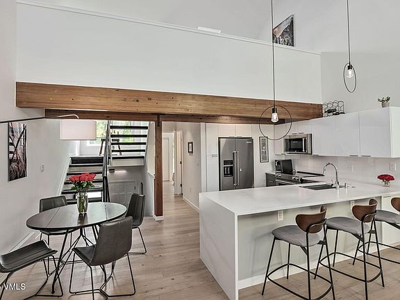 Welcome to this beautifully renovated 2-bedroom + loft, 2 bath townhome, perfectly situated in the highly desirable Singletree neighborhood, right on the 11th fairway of the Sonnenalp Golf Course and walking distance to the Sonnenalp Golf Club. Every inch of this home has been thoughtfully updated with high-end finishes, including hardwood floors, quartz countertops, custom closets, Bosch washer/dryer, and heated tile bathroom and entry way floors. The open-concept layout features large windows that fill the home with natural light, showcasing golf course views, upper and lower decks in addition to a versatile loft space, perfect for an office, guest room, or den.