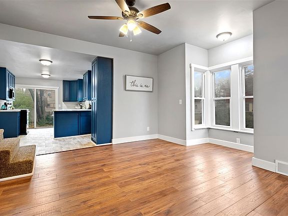 Affordable and adorable! The home's interior has been completely updated with a hint of modern, soft gray color palette and crisp white trim.. Entering the front door you will be greeted with a large entrance way which opens to the living room, dining room and kitchen all of which have been updated from floor to ceiling. A main floor full bath complete with new tile walk-in shower, vanity, flooring and lights. Volume ceilings found throughout. There is plenty of natural light from an abundance of windows.